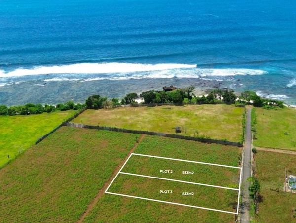 The plots are flat, cleared, and ready to build, with ocean views in front and mountain views behind.